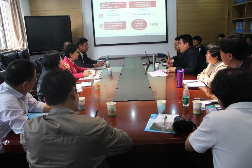 张主任首先对来访者表示欢迎,接着介绍了我校基础实验教学中心的基本情况、功能定位、基础实验教学与管理改革以及近年来发展和取得的成绩。并对依托于中心的科学教育仪器研发中心以及面向全校本科生开设的《大学科学实验》课程进行了介绍。然后双方就实验室建设、实验队伍建设、经费管理、课程设置、教学资源共享、实验室安全等问题进行了交流。