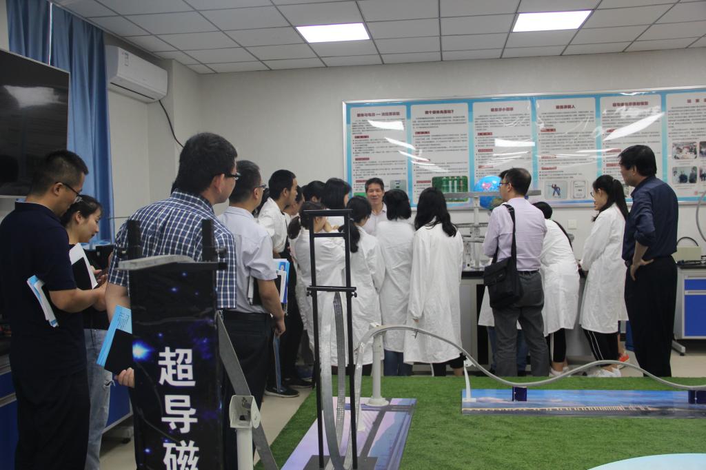 座谈结束后,尹处长一行来到科学教育仪器研发中心,观看了杨万民教授团队研发的超导电磁系列教学仪器的精彩演示,对我校教师自主创制的教学仪器表现出了浓厚的兴趣。尹处长表示不虚此行,交流考察发现师大有很多值得学习借鉴之处,希望今后加强沟通交流,进一步推动实验教学改革与创新,提高人才培养质量。